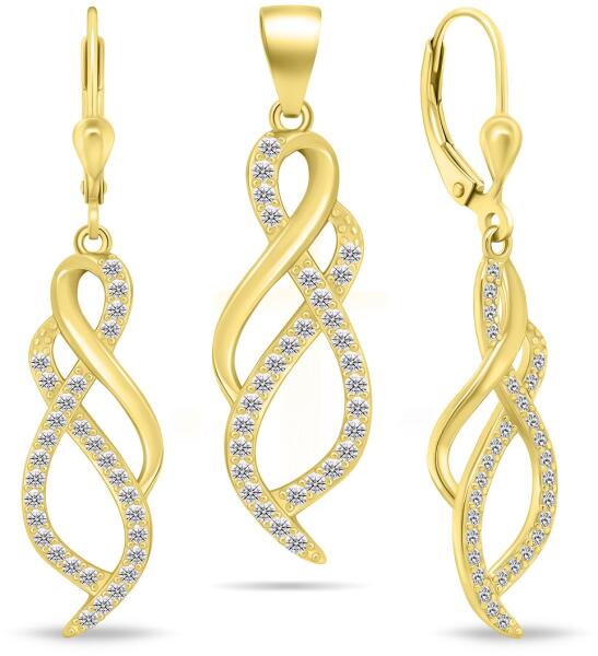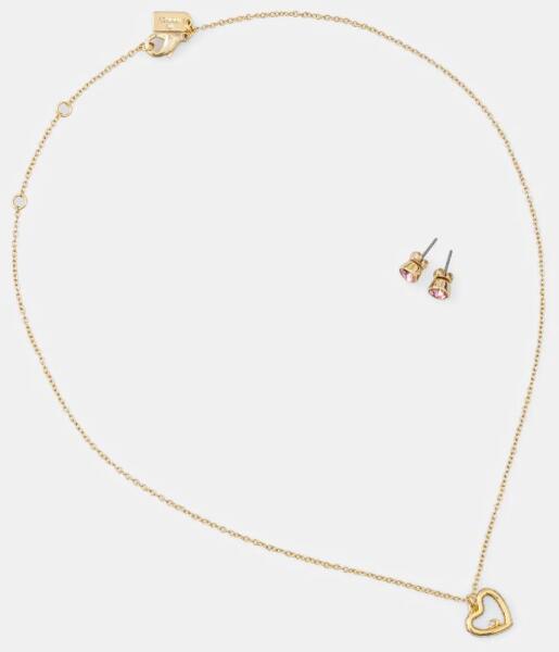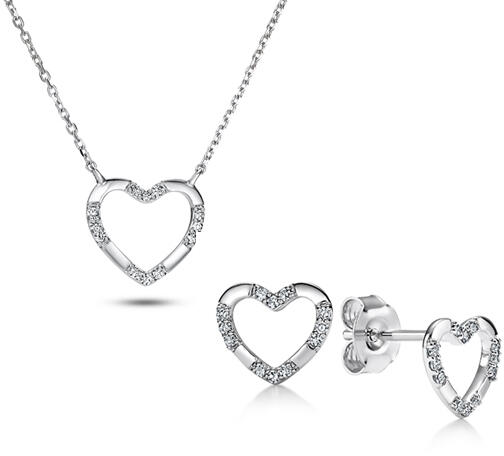 A gyémántokkal díszített szív motívummal ellátott szett ideális kiegészítő a romantikus szimbolikát és a finom eleganciát kedvelő nők számára. Ez a fehéraranyból készült ékszer hűvös csillogást sugároz, és a minőségi gyémántokkal kombinálva fényűző, mégis finom megjelenésű. A klasszikus kerek formájú gyémántok kiemelik a szív szimbolikáját, így ez a s