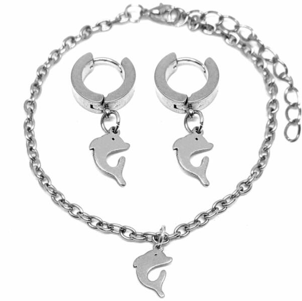 Nemesac l delfines karkötő és fülbevaló szett. Kifinomult, különleges ékszerszett. Paramé terek: Charm mérete kb. 1,1 cm. Anyaga nemesacél. Karkötő mérete 17+5 cm. (Ha ettől eltérő méretet szeretnél, rendeléskor a MEGJEGYZÉSBE írd be. ) Fülbevaló kb. 2,5 cm.