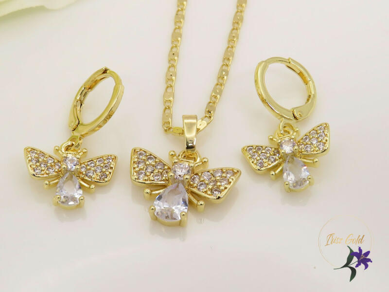 Gyönyörű alakú medál és fülbevaló fehér cirkonkővel Szin: 18K Méret: Lánc 50cm/2mm Medál:20x18 mm Fülbevaló: 24x10mm Karikazár : 11 mm A forgalmazott divatékszerek alapanyaga nikkel és ólommentes ezért többnyire nem okoznak allergiás tüneteket, nyugodtan hordhatják fémérzékeny emberek is. Általában nem színezik a bőrt és más divatékszerekhez képest nagyságrendek