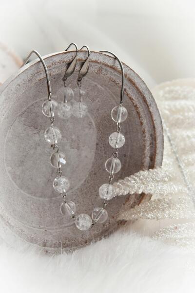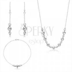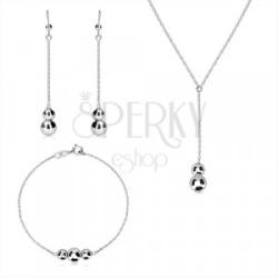 925 ezüst szett egy nyakékből, karkötőből és fülbevalóból áll. A nyakék részei a spirálisan csavart nyaklánc és mozgó medál. A medált a rövidebb láncon két gömb alkotja, míg a nagyobb gömb az alsó részen helyezkedik el. A karkötő egy enyhén csavart láncból és egy rögzített díszből, három golyóból áll - a nagyobb gömböt két oldalról két kisebb gömb fog