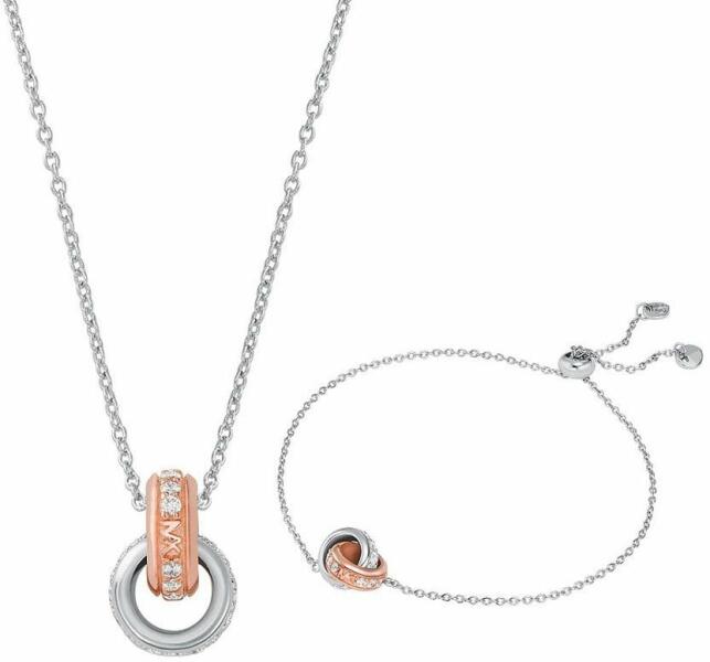 A karkötő és nyaklánc szett 925 ezüstből készült, egyforma motívummal. A nyaklánc merőlegesen összekapcsolt ovális szemekből áll, melyen egy szív alakú tükörfényes medál függ. A szív szimmetrikus, benne egyhén gravírozott Sarkcsillag található. A csillagban fekete színű csiszolt gyémánt van foglalva. A felületük rózsaszín árnyalatú. A nyaklánc és karkötő ho