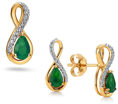 Ez az elegáns, sárgaaranyból készült, nyolcas alakú szett tökéletes a nők számára, akik visszafogott eleganciát keresnek egy érdekes színelemmel. A gyémántok kiváló minősége és szimmetriája az aprólékos kivitelezésről tanúskodik, míg a természetes smaragd fényűző színpompát kölcsönöz a készletnek. Időtlen dizájnjával ez az ékszer értékes kiegészítő le