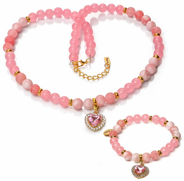 FIGYELEM! Ha nem látod a választólistát, rendeléskor a Megjegyzésbe írd be a lánc hosszát (50 vagy 60 cm), és a csuklód körbemért méretét! A szett tartalma: Nyaklánc: Csatos, extra erős acélsodronyra fűzve. Mérete választható 50 vagy 60 cm. Válassz a listából méretet. Ha nem választasz, az 50 cm-es láncot küldjük. Karkötő: A képen rugalmas karkötő látható kapoc