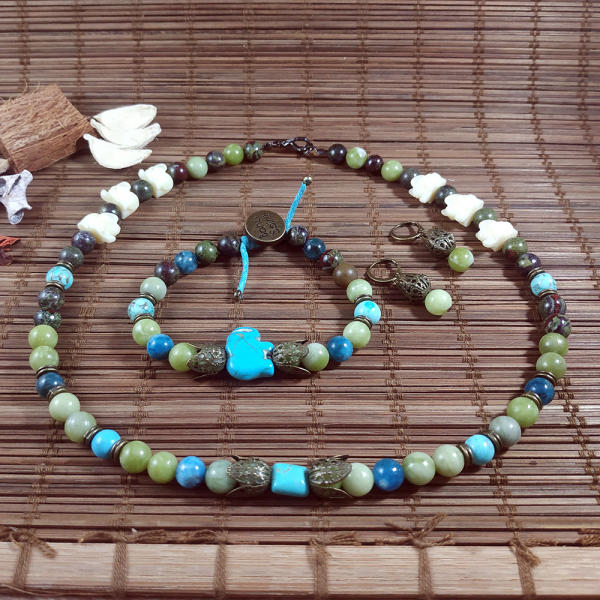 Bryssa Szett Csodaszép Bryssa ékszerszett szuper áron. A szett főleg különleges eseményekre való viselet, mint szalagavató, bál, esküvő... A szett nyakéket és egy pár fülbevalót tartalmaz. Ezzel a szettel mindenkit elvarázsol. Tulajdonságok: A nyakék hossza: 36cm + 4cm A fülbevaló mérete: 2cm x 1,1cm Szín: Multi Anyaga: Fém és cink ötvözete