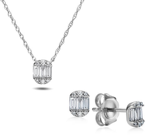 A finom fehérarany bagett fülbevaló és nyaklánc szett egy elegáns szett, amely különleges alkalmakra és mindennapi viseletre egyaránt alkalmas a minimalista luxust kedvelő nők számára. Ez a készlet fehér aranyból készült, amely hűvös csillogásának köszönhetően tökéletesen kiemeli a beállított gyémántok tisztaságát és ragyogását. A fülbevaló- és nyakláncszet