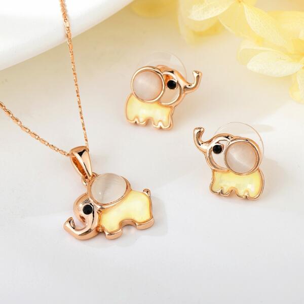 Cikkszám: 0663 Ékszerszett: - rózsaarany bevonattal, - krémszínű macskaszem opálokkal, - kagylóhéj díszítéssel, - állítható hosszúságú lánccal ( 40 cm - 45 cm ), - 1 pár beszúrós fülbevalóval ( 1,5 cm x 1,2 cm ). Súlya: 13 g. Medál mérete: 2,5 cm x 2 cm ( az akasztós résszel) Gyönyörű, fiatalos, állatfigurás ékszer. A megadott méreteket kérjük vegyék figyelem