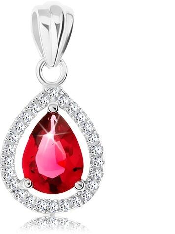 925 ezüst szett ródiumozott felülettel pattintós kapoccsal záródó fülbevalóból és medálból. Mindkettő könnycsepp alakú piros, csiszolt kidomborodó cirkóniával, amelyet egy átlátszó vonal keretez kicsi csillogó kövekkel. A cirkónia foglalatba van ültetve és három karommal megfogva. A medál méretei: 10 x 12 mmA medál súlya: 1,10 gA láncra kerülő szem szélessége: