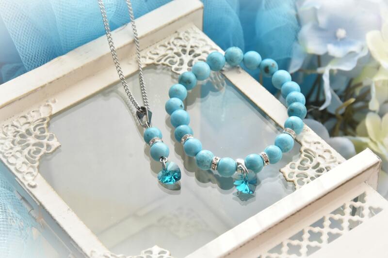 FIGYELEM! Ha nem látod a választólistát, rendeléskor a Megjegyzésbe írd be a lánc hosszát (50 vagy 60 cm), és a csuklód körbemért méretét! A szett tartalma: Nyaklánc: Csatos, extra erős acélsodronyra fűzve. Mérete választható 50 vagy 60 cm. Válassz a listából méretet. Ha nem választasz, az 50 cm-es láncot küldjük. Karkötő: A képen rugalmas karkötő látható kapoc