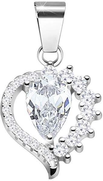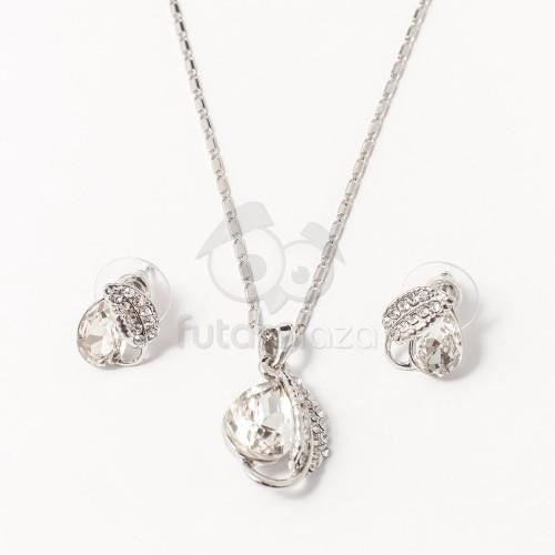 Ródiumozott 925 ezüst szett bedugós fülbevalóból és medálból könnycsepp kontúr alakban, amely közepébe egy átlátszó, csiszolt cirkónia van ültetve ugyanolyan alakban. A körvonalat átlátszó kövek díszítik, amelyek az egyik oldalon a keretbe vannak ültetve a másikon pedig foglalatba, amellyel fogazott vonalat képeznek. A medál méretei: 13,5 x 15 mmA medál súlya: 2,0 g