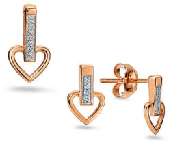 A Diamond Heart kollekcióból készült szett a romantika szimbóluma, amely a szív motívumon keresztül a szerelem időtlen üzenetét közvetíti. Ez a 14 karátos rózsaaranyból készült készlet finom és precíz kivitelezésével tűnik ki. A csillogó tiszta gyémántok gondosan be vannak foglalva, így egy függőleges vonal jön létre, amely hangsúlyként szolgál, és a szemet mag