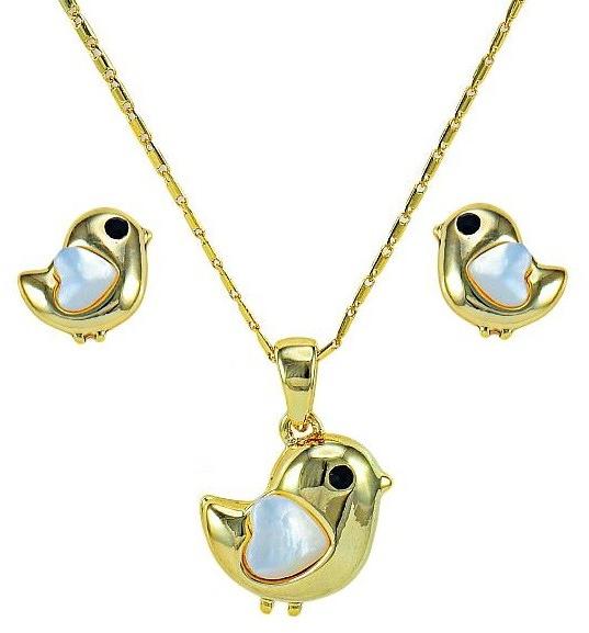 Cikkszám: 0877 2 részes ékszerszett: - arany bevonattal, - szív alakú macskaszem opálokkal, - állítható hosszúságú lánccal ( hossza: 40 cm - 45 cm ). - beszúrós fülbevalóval ( mérete: 1,3 cm x 1,2 cm ). Súlya: 10 g. Medál mérete: 2 cm x 1,6 cm. Fiatalos, állatfigurás ékszerszett ! A megadott méreteket kérjük vegyék figyelembe !