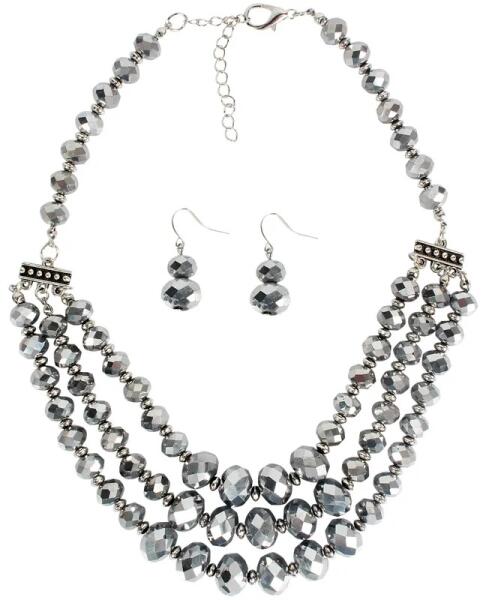 Candelaria Szett Csodaszép Candelaria ékszerszett szuper áron. A szett főleg különleges eseményekre való viselet, mint szalagavató, bál, esküvő... A szett nyakéket és egy pár fülbevalót tartalmaz. Ezzel a szettel mindenkit elvarázsol. Tulajdonságok: A nyakék hossza: 34cm + 5cm A fülbevaló mérete: 2,2cm x 1,4cm Szín: Ezüst Anyaga: Fém és cink ötvözete, üveggyöngyök