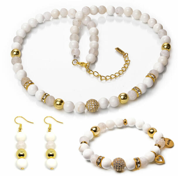 FIGYELEM! Ha nem látod a választólistát, rendeléskor a Megjegyzésbe írd be a lánc hosszát (50 vagy 60 cm), és a csuklód körbemért méretét! A szett tartalma: Nyaklánc: Csatos, extra erős acélsodronyra fűzve. Mérete választható 50 vagy 60 cm. Válassz a listából méretet. Ha nem választasz, az 50 cm-es láncot küldjük. Karkötő: A képen rugalmas karkötő látható kapoc