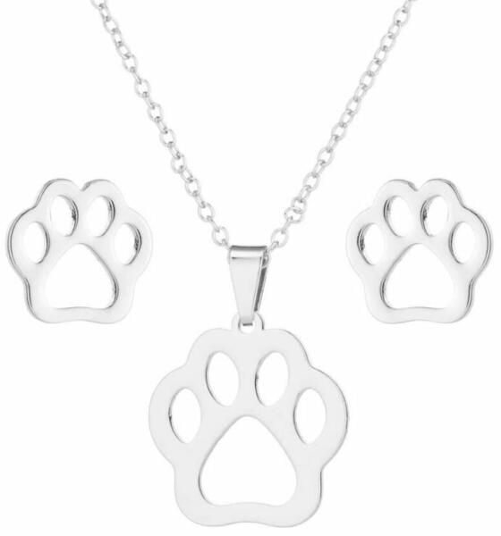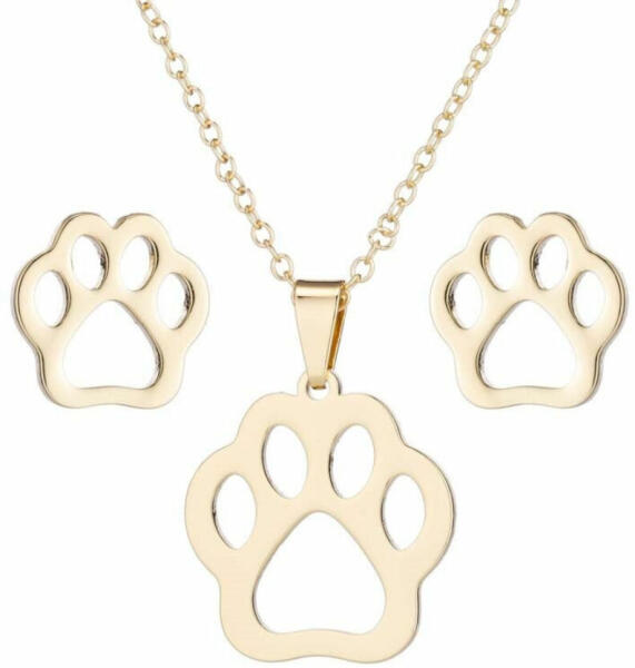 Nemesacél tappancs motívumos medál nyaklánccal és fülbevalóval. Háziállat nélkül lehet élni, de nem érdemes... Híres ember mondta ezt, és mennyire igaza volt. Kell, hogy elterelődj a mindennapok szürkeségétől egy kis szőrcsomóval, garantáltan elfelejted minden bajodat, ha kutyád, macskád idétlenül hempereg, trappol vagy éppen azt hiszi, nagyon rafkós és kaját lop, pe