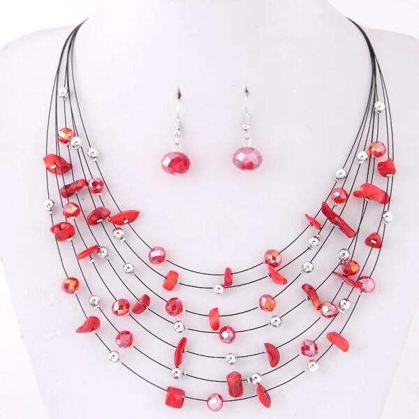 Brisia Szett Csodaszép Brisia ékszerszett szuper áron. A szett főleg különleges eseményekre való viselet, mint szalagavató, bál, esküvő... A szett nyakéket és egy pár fülbevalót tartalmaz. Ezzel a szettel mindenkit elvarázsol. Tulajdonságok: A nyakék hossza: 40cm + 5cm A fülbevaló mérete: 3,3cm x 1cm Szín: Piros Anyaga: Fém és cink ötvözete