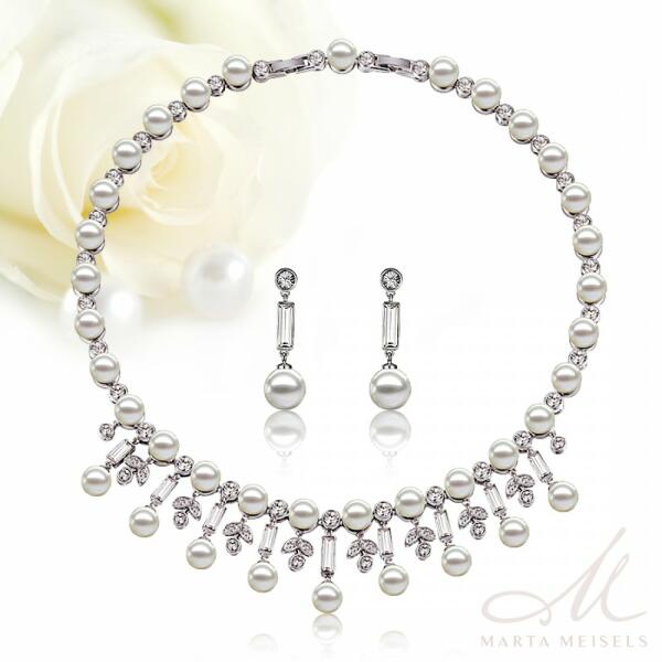 E xkluzív, csodaszép kidolgozású menyasszonyi nyaklánc és fülbevaló szett valódiSwarovski elements kristályokkal és Swarovski gyöngyökkel díszítve. Ródium bevonattal készült, nem okoz allergiát. Nyaklánc mérete: 43,5 cmbiztonsági zárral Fülbevaló hossza: 3,3 cm Gyöngyök mérete: 0,7 cm Kristályok mérete: 0,5 cm Magas színvonalon kidolgozott, kifinomult stílusúmenyas