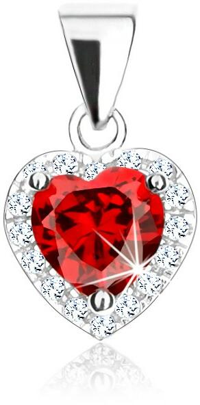 925 ezüst szett bedugós fülbevalóval és medállal, kicsi egyenletes szív alakban csiszolt piros cirkóniából, amelyet egy átlátszó, csillogó kövekből álló vonal keretez. Az oldalain hosszúkás szűk kivágások húzódnak. A szett felülete ródiumozott. A medál méretei: 7,5 x 7,5 mmA medál súlya: 1,0 gA láncra kerülő szem szélessége: 3 mmMedál lánc nélkül. A fülbeva