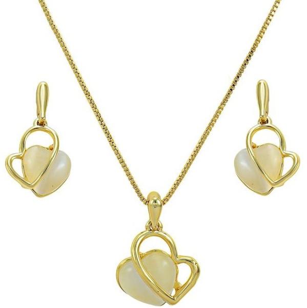 Cikkszám: 0224 Ékszerszett: - arany bevonattal, - krémszínű macskaszem opálokkal, - állítható hosszúságú lánccal ( 40 cm - 45 cm ), - 1 pár beszúrós fülbevalóval ( 2,7 cm x 1,5 cm ). Súlya: 16 g. A medál mérete: 3 cm x 1,8 cm. Gyönyörű, elegáns, macskaszem opálos ékszer ! A megadott méreteket kérjük vegyék figyelembe !