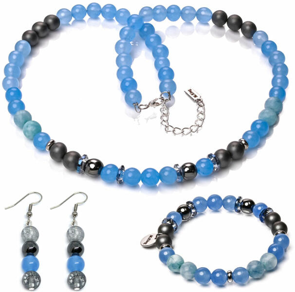 FIGYELEM! Ha nem látod a választólistát, rendeléskor a Megjegyzésbe írd be a lánc hosszát (50 vagy 60 cm), és a csuklód körbemért méretét! A szett tartalma: Nyaklánc: Csatos, extra erős acélsodronyra fűzve. Mérete választható 50 vagy 60 cm. Válassz a listából méretet. Ha nem választasz, az 50 cm-es láncot küldjük. Karkötő: A képen rugalmas karkötő látható kapoc