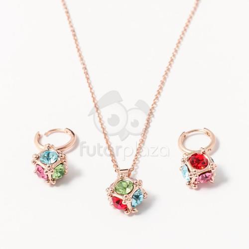 Cikkszám: 0473 2 részes 3D-s ékszerszett: - áttetsző, minőségi kristályokkal, - arany bevonattal, - halvány rózsaszín színezéssel, - állítható hosszúságú lánccal ( 40 cm - 45 cm ), - beszúrós, függő fülbevalóval ( mérete: 3 cm x 1,3 cm ). Súlya: 20 g. Medál mérete: 3,5 cm x 1,6 cm. Elegáns, egyedi kristályos ékszerszett ! A megadott méreteket kérjük vegyék figy