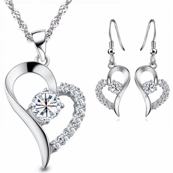 Heart Shape Szett Csodálatos Heart Shape szett verhetetlen áron. A szett egy pár fülbevalót és nyakéket tartalmaz. Az ékszerek nem tartalmaznak nikkelt, ezért érzékeny bőrű emberek is viselhetik. Tulajdonságok: A nyaklánc hossza: 47cm + 5cm A medál mérete: 1,5cm x 1,8cm A fülbevaló mérete: 1,6cm x 1,4cm Szín: Ezüst Anyaga: Fém és cink ötvözete