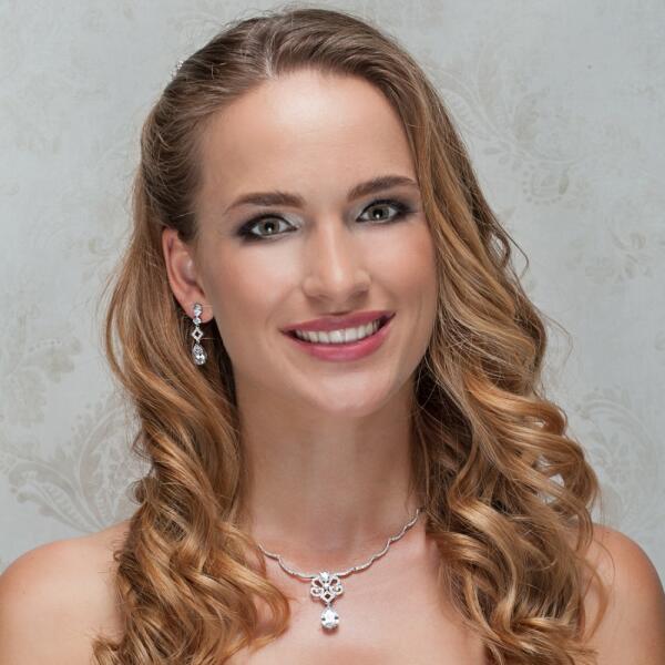 Finom kidolgozású, szépséges menyasszony nyaklánc és fülbevaló szett csepp alakú cirkónia kristályokkal díszítve, valódi fehérarany bevonattal. Ragyogó kiegészítőd lehet a nagy napon! Nikkelmentes, bőrbarát fémötvözetből készült, nem okoz allergiát. Nyaklánc hossza: 42 cm Fülbevaló hossza: 3,4 cm Kifinomult stílusú menyaszony fülbevaló és nyaklánc szett, mely t