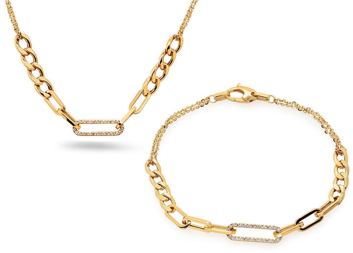 - A készlet egy nyakláncot és egy fülbevalót tartalmaz. - Stekker típusú zár - A fülbevaló méretei: 2 cm. - Minimális hossz: 16 cm. - Maximális hossz: 21 cm. - Gyári csomagolásban.