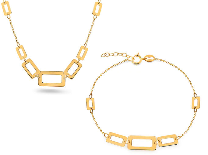Sárga arany szett faragott négyzet alakú díszítéssel, modell IZ30414S