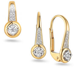 Ez a sárgaarany fülbevaló és medál szett a klasszikus megjelenést a kerek díszbe foglalt, briliáns csiszolású gyémántok finom részleteivel ötvözi. Az ékszer a részletekre összpontosít - a sárga aranyba foglalt gyémántok gyönyörű kontrasztot alkotnak, amely kiemeli tisztaságukat és ragyogásukat. A gyémántok és a sárga arany kombinációja ideális ékszerré teszi ez