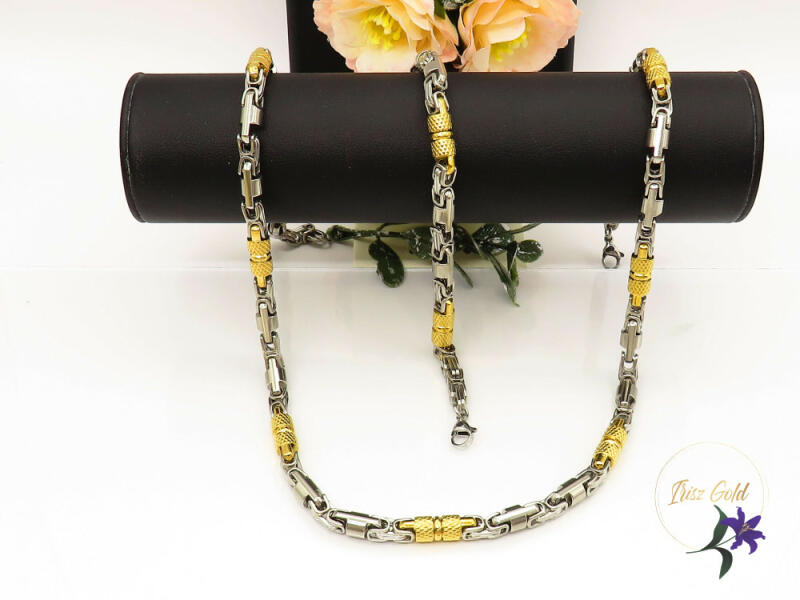 Antiallergén hengeralakú szett nyaklánc, karkötő ródium és 18k szemekkel Szin: multicolor Méret: 56/6mm Karkötő:22cm/6mm A forgalmazott divatékszerek alapanyaga nikkel és ólommentes ezért többnyire nem okoznak allergiás tüneteket, nyugodtan hordhatják fémérzékeny emberek is. Általában nem színezik a bőrt és más divatékszerekhez képest nagyságrendekkel jobb kopásáll
