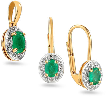 Ezt az elegáns fülbevaló- és medálkészletet kifinomult ízlésű nőknek terveztük, akik értékelik a finom luxust és a természetes drágaköveket. A készlet központi eleme egy csodálatos, 0,62 ct súlyú ovális smaragd, amelynek gazdag zöld színét tökéletesen kiemeli az összesen 0,030 ct súlyú, csiszolt gyémántok finom ragyogása (szín H, tisztaság SI1). A szett időtlen