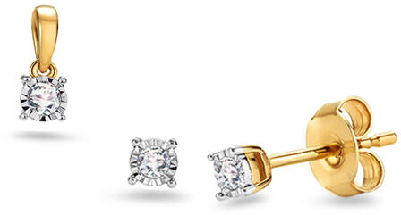 A gyémántokkal kirakott topáz Clara időtlen bájával és első osztályú kialakításával tűnik ki. A sárga aranyból készült szett olyan ékszer, amely minden nő eleganciáját hangsúlyozza. A szettben található 0,21 ct súlyú természetes gyémántok H színűek és SI1 tisztaságúak, így gyönyörű csillogást és ragyogást biztosítanak. Ráadásul e gyémántok tökéletes