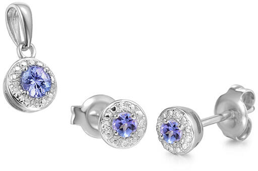 Ez a finom, tanzanitokkal és gyémántokkal díszített szett tökéletes ajándék, amely kivételes benyomást fog kelteni. A fülbevalót és a medált összesen 16 darab H színű és SI1 tisztaságú, briliáns csiszolású gyémánt (0,300 ct) díszíti, amelyek három ovális tanzanittal kombinálva rendkívül elegánsnak és stílusosnak tűnnek. A briliáns csiszolású gyémántok gond