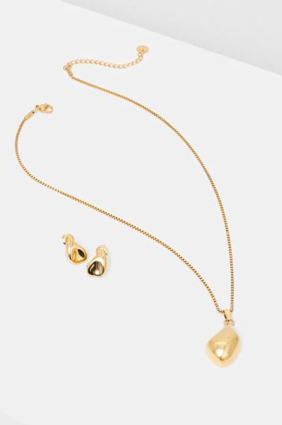 A szett egyszerű és minimalista kialakításával tűnik ki, így tökéletes kiegészítő a mindennapi viselethez. Vegyes aranyszíne a legkülönbözőbb bőrtónusokat egészíti ki, és tökéletesen harmonizál a ragyogó szemekkel. A mindössze 3 mm átmérőjű ékszer finom és könnyű, így egész nap kényelmes viseletet biztosít. A sötétebb hajú vagy semleges bőrtónusú visel