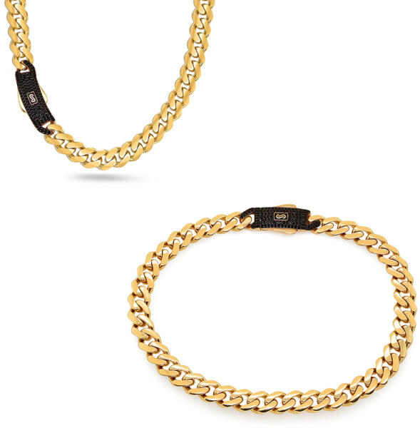 Monaco Chain set Classic Plain Pavé lock black 6,5 mm, modell IZ29437BS