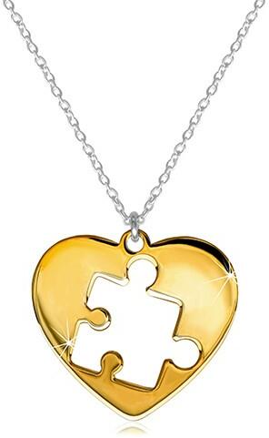 A 925 ezüst szett két nyakláncból áll, amelyeket egymásba illeszthető medálok díszítenek. Az egyik láncon egy arany színű szív függ, amelynek közepében egy puzzle alakú kivágás található. A másik láncot egy kivágott, ezüst színű puzzle díszíti, amelyen az "I Miss U" - "Hiányzol" felirat olvasható. A medálok simák és fényesek. A láncokat ovális szemek alkotják