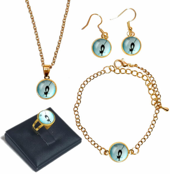 Nyújtózkodó cica szett (lánc, karkötő, fülbevaló), arany és ezüst színben. A szett tartalma: medál lánccal, fülbevaló, karkötő, állítható gyűrű. Rendelhető arany és ezüst színekben. Válaszd ki a listából, hogy arany vagy ezüst színben, és milyen méretben kéred, vagy írd be rendeléskor a MEGJEGYZÉSBE. Az alapár 50 cm-es láncot és 17 cm-es karkötőt, állíth