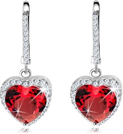 925 ezüst szett fülbevalóból és medálból. Piros szív alakú csiszolt cirkóniából áll, mely három fényes pálcával van megfogva. A teljes kerületét csillogó apró cirkóniákkal kirakott szegély veszi körül. A fülbevaló kapcsolása orosz patent. Medál mérete(láncra kerülő szemmel): 13 x 23 mmLáncra kerülő szem szélessége: 2 mmMedál súlya: 3,54 gMedál lánc nélk