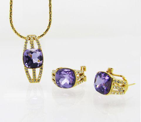 Cikkszám: 1425 2 részes ékszerszett: - egyedi kristályos díszítéssel, - 18 karátos aranybevonattal, - 42 cm hosszúságú lánccal , -beszúrós fülbevalóval ( 2 cm x 1 cm ). Súlya: 27 g. Medál mérete: 3 cm x 1 cm. Nagyon szép, gyönyörű, kristályos divatékszer ! A megadott méreteket kérjük vegyék figyelembe !
