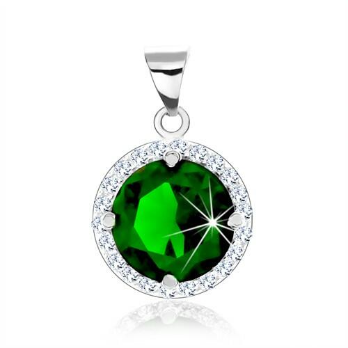 Ródiumozott 925 ezüst szett medálból és fülbevalóból. A dísz részben egy smaragdzöld cirkónia tűnik ki kör alakban átlátszó kövekkel keretezve. Az oldalain kicsi háromszög alakú kivágások húzódnak. A szett felülete ródiummal kezelt. A fülbevaló pattintós kapoccsal záródik. A medál átmérője 11,5 mmA medál súlya : 1,9 g A láncra kerülő szem szélessége: 3 mm