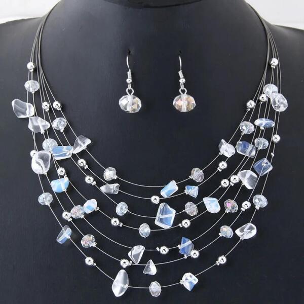 Brisia Szett Csodaszép Brisia ékszerszett szuper áron. A szett főleg különleges eseményekre való viselet, mint szalagavató, bál, esküvő... A szett nyakéket és egy pár fülbevalót tartalmaz. Ezzel a szettel mindenkit elvarázsol. Tulajdonságok: A nyakék hossza: 40cm + 5cm A fülbevaló mérete: 3,3cm x 1cm Szín: Kristály Anyaga: Fém és cink ötvözete