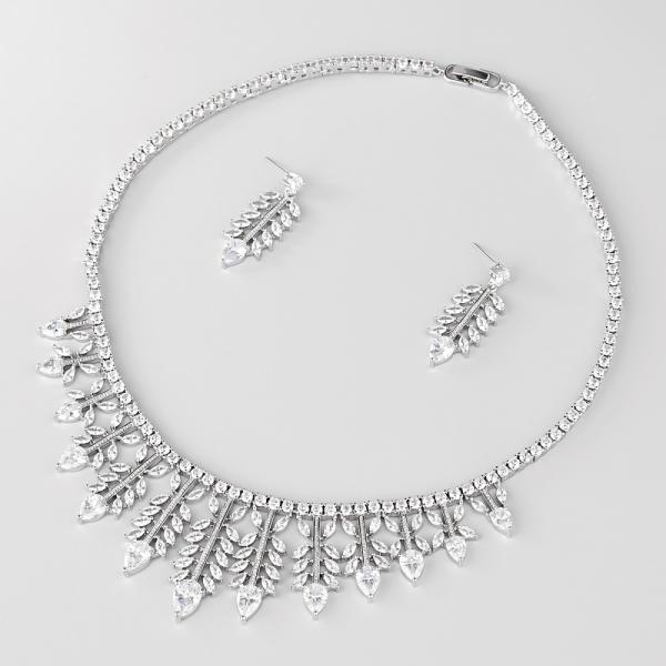 Cikkszám: 0758 2 részes alkalmi/esküvői ékszerszett: - cirkónia kristályokkal, - platina bevonattal, - beszúrós fülbevalóval ( hossza: 3,5 cm ). Súlya: kb. 60 g. Alapanyaga: minőségi fémötvözet. Gyönyörű, szimulált gyémántos esküvői/alkalmi divatékszer ! A megadott méreteket kérjük vegyék figyelembe !