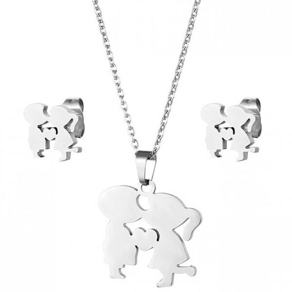 Couple in Love Szett Szépséges Couple in Love ékszerszett verhetetlen áron. A szett nyakláncot medállal és fülbevalót tartalmaz. Nem tartalmaz sem nikkelt, sem ólmot, sem kadmiumot, ezért érzékeny bőrű emberek is viselhetik. Tulajdonságok: A nyakánc hossza: 36cm A medál mérete: 1,8cm x 1,9cm A fülbevaló mérete: 1cm x 0,9cm Szín: Ezüst Anyaga: Nemesacél