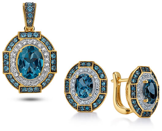 Fülbevaló és medál szett briliánsokkal és topázzal Ingrid, modell KU2050S