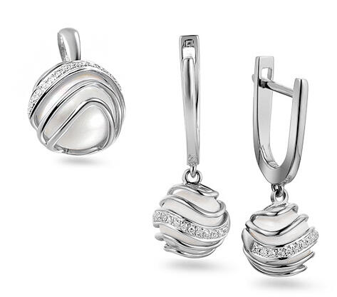 A fantáziadús, gyémántokkal kirakott fehérarany gyöngy tökéletes választás azoknak a nőknek, akik értékelik a kreatív eleganciát. Ez a fehéraranyból készült szett az Esküvői ékszerek kollekció része, és nemcsak esküvői ékszerként, hanem különleges alkalmak eredeti kiegészítőjeként is alkalmas. A készlet központi eleme egy 8 mm-es gyönyörű fehér gyöngysor,