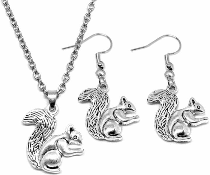 A lánc mérete 50 cm, ha más méretet szeretnél, írd be rendeléskor a megjegyzésbe, milyen méretben kéred. Mókusos medál lánccal és fülbevalóval. Paraméterek: Medál mérete 2,1x2 cm. Medál anyaga fémötvözet. Fülbevaló rozsdamentes acél, kb. 4 cm. Nyaklánc rozsdamentes acél: hossza 50 cm (ha más méretet szeretnél, Megjegyzésbe írd be).