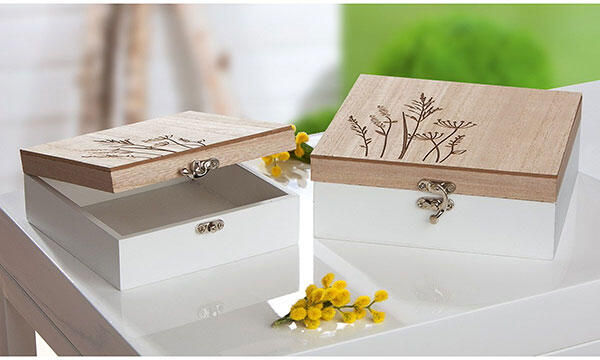 Csodálatos fából készített díszdoboz virágos díszítéssel bézs és fehér színben, zárral. A virágokkal díszített fa díszdoboz mérete: 18x18x6,5cm.