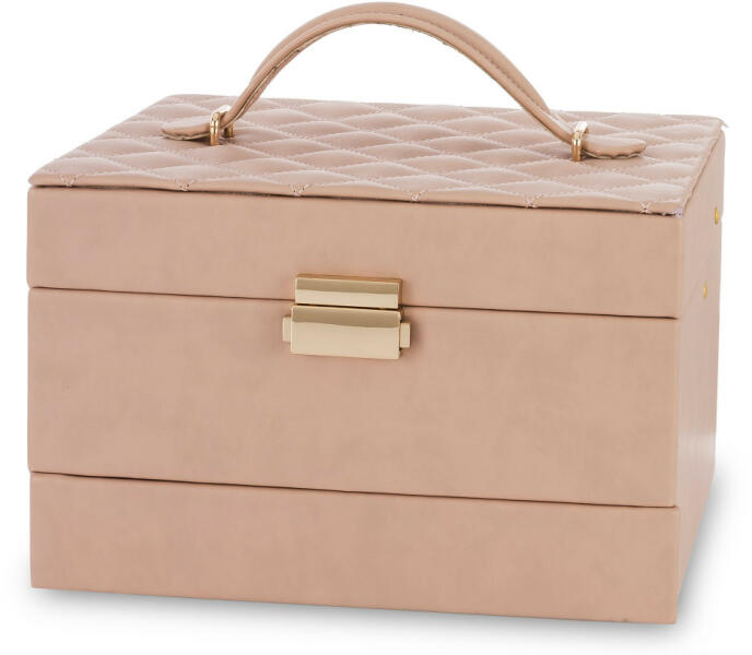 Elegáns fiókos tároló doboz, melybe legbecsesebb ékszereid, sminked vagy kis méretű parfümöd is belefér. A doboz alsó fiókja a fedél felnyitásakor automatikusan kinyílik, így azonnal hozzáférsz mindenhez amire szükséged van. A fedél belül egy tükröt is rejt, ebben azonnal ellenőrziheted melyik ékszered passzol legjobban mai szettedhez. Ez a stílusos púder színű éksze