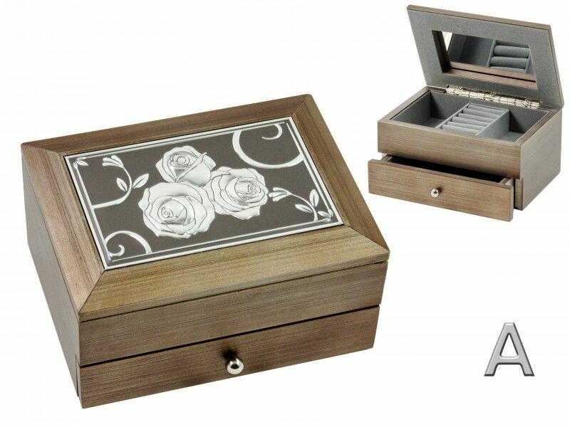 Ékszertartó doboz fiókos tükrös 18x13x10cm AFAS0278 5féle - Ékszertartó díszdoboz 5féle típus választhatóBefoglaló méretek 19x15x11 cmAnyaga fa