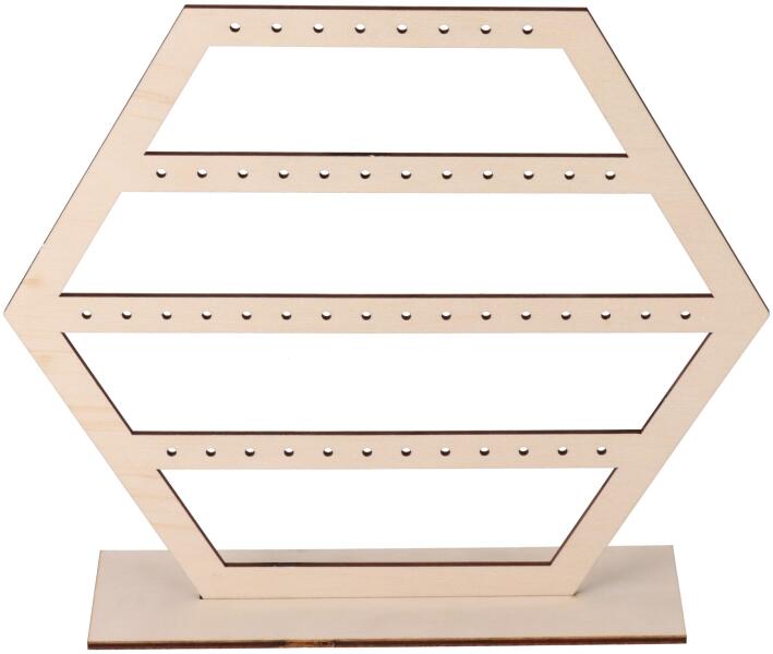 3 mm vastag nyírfa rétegelt lemezből állítottuk össze ezt a stílusos állványt, amelyre ráakaszthatja a fülbevalókat. A termék a lézeres kivágás miatt bebarnulhat. Javasoljuk, hogy az állványt ragassza oda az alaphoz.